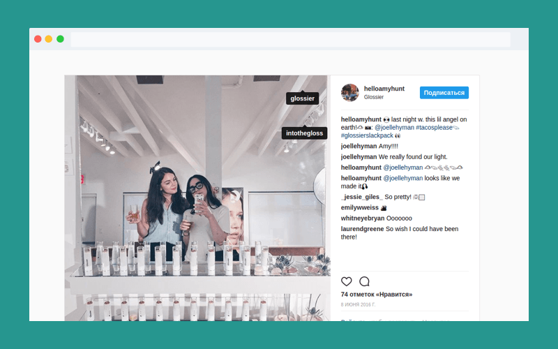 The clients can take pictures and tag Glossier’s Instagram page. After that, the company’s marketing team re-shares posts and answers questions about their brand.
