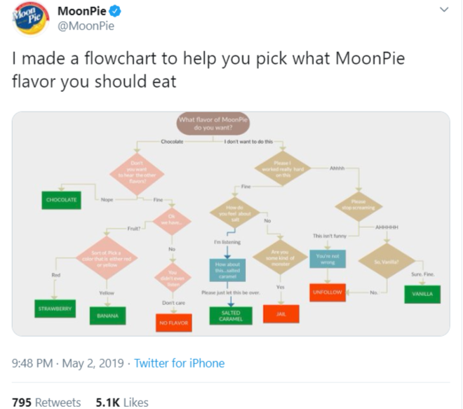 Most of your customers are already on social channels. They’re talking about brands, gossiping about their neighbours, discovering new products, making stories go viral, and promoting stuff. They’re also brand ambassadors. For them to be your brand ambassador you need something unique and strong. It could be humour that differentiates you. For Moonpie it is. They built a successful brand presence on Twitter 280 characters, at a time.