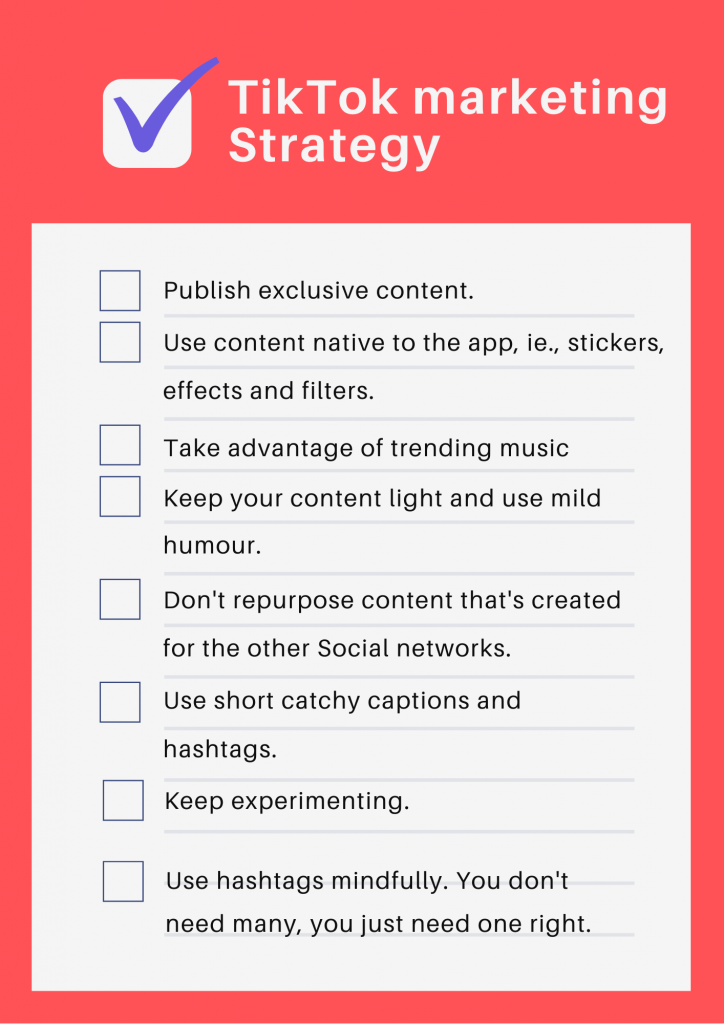- What works on Instagram might not work here. You will have to create content specially designed for TikTok.