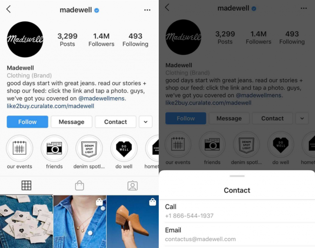 If you want to satisfy your followers, consider adding various contact options. Here’s how MadeWell did it: