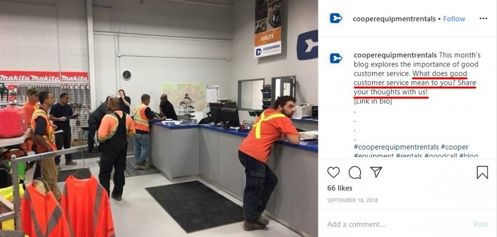 For instance, you can create an Instagram post and dedicate it to the importance of customer service. To start a conversation with your followers, encourage them to share their thoughts in the comments: