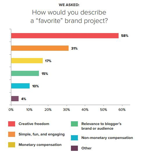 In fact, according to a survey, nearly 58% of influencers today feel that creative freedom is their top-most priority if they are to identify a campaign as their most favourite project followed by the simplicity of the project. Have a look.