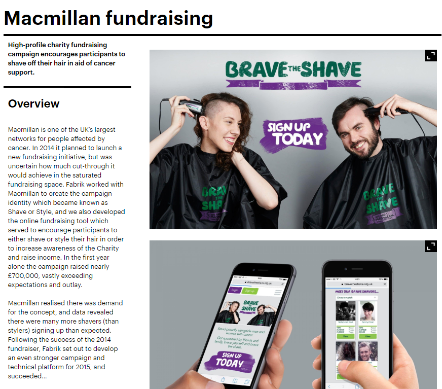 - Conduct case studies: Ask some of your biggest clients to work with you on a case study so you can get a real insight into how your solutions have benefited them. This will also give you an opportunity to create some great content as Fabrik brands did here: