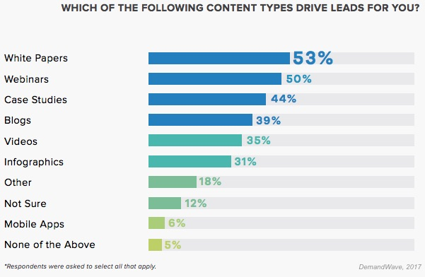 A white paper is the best-performing content type for B2B lead generation. It’s a piece of high-value content that’s detailed, in-depth, and has valuable insights.