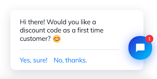 Many B2C eCommerce brands, for example, tend to use chatbots to share discounts for the first purchase like this.