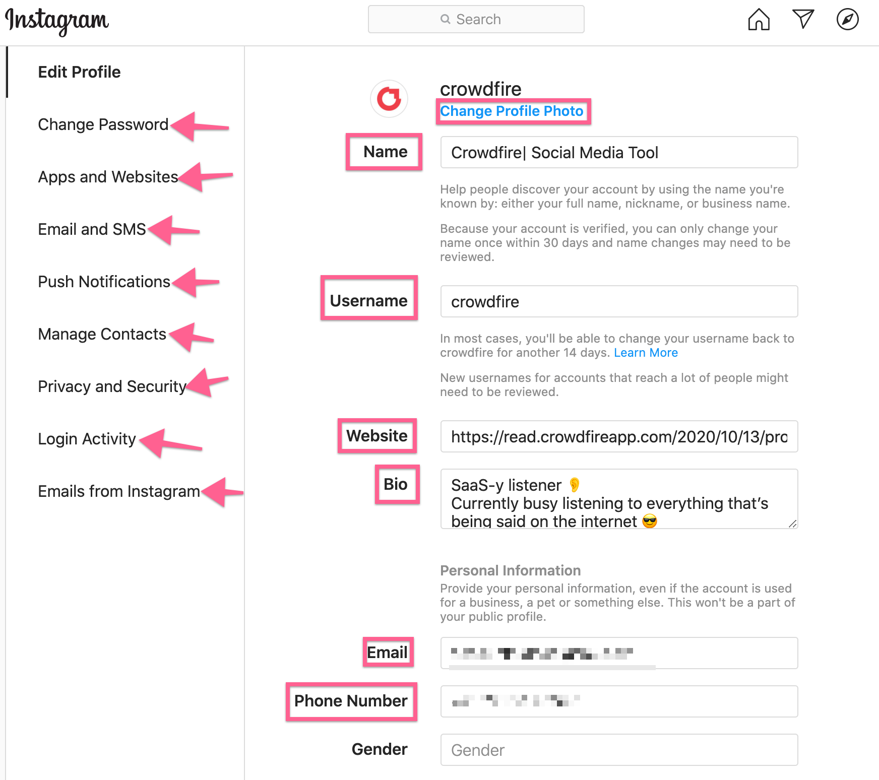 You can take care of a lot of things on instagram.com. This includes editing your profile.