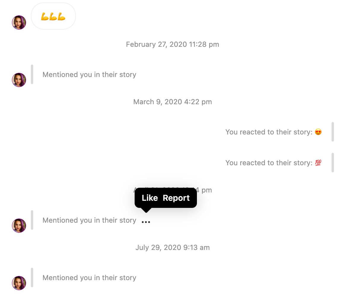 You can watch Stories by clicking on the profile picture that shows up at the top. Here you can react to the Stories and can send a reply. What you can’t do > interact with the stickers. Just like the mobile version, the lives are stacked at the beginning of the Stories and can be watched by clicking on it.