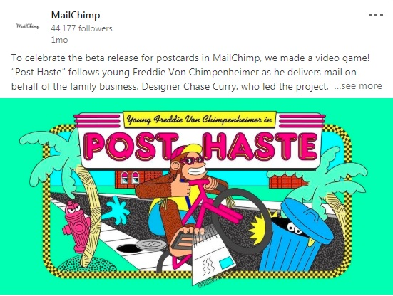 Take a leaf from MailChimp. Their team came up with a very innovative LinkedIn campaign to boost engagement. They launched a video game to familiarize users with their brand