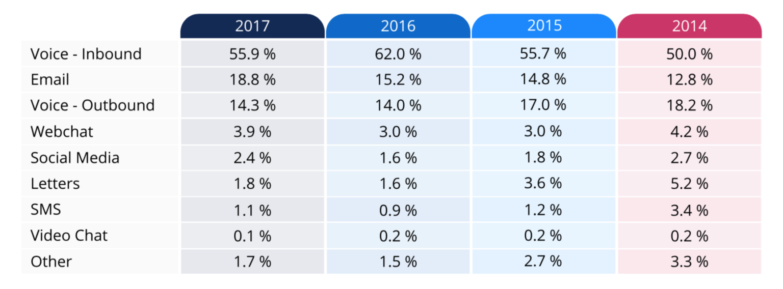 Unfortunately, customers have been let down by companies on social media. In 2010 the number of customers who wanted to contact companies through social media had increased dramatically. However, that trend has started to decline since 2017.
