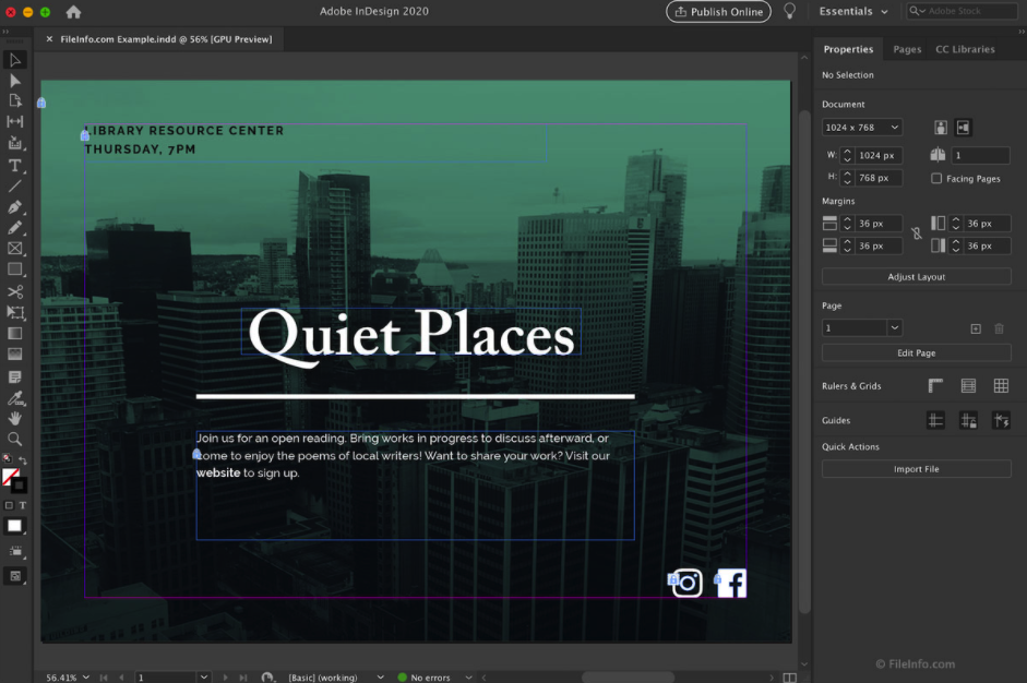 This graphic design tool is ideal for designing books, magazines, brochures, posters, and even interactive PDF files. You can get Adobe InDesign as part of Adobe Creative Cloud for US$20.00 per month. However, there is also a free trial version available.