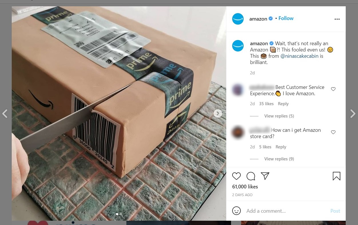 Take a look at the fan-made cake that Amazon shared below! You know your customer service is on the right track if customers share similar complimentary posts.
