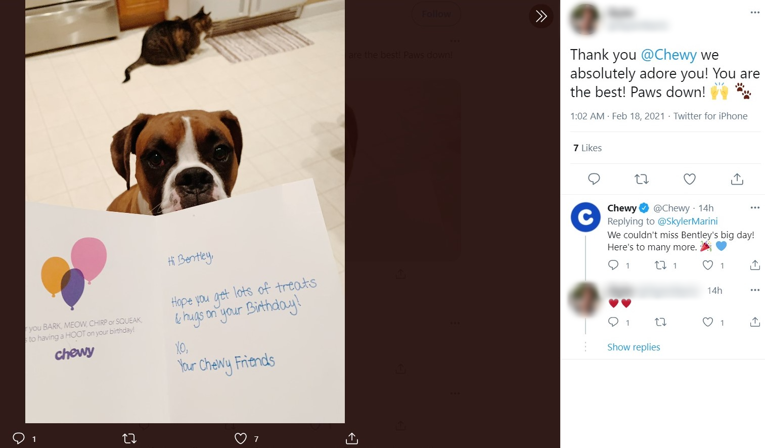 However, while Chewy is a great example of a company using social media to spread joy, they are also an inspiration when it comes to addressing more difficult topics. For instance, have a look at the example below. Here, a customer received flowers after the recent passing of a loved one.