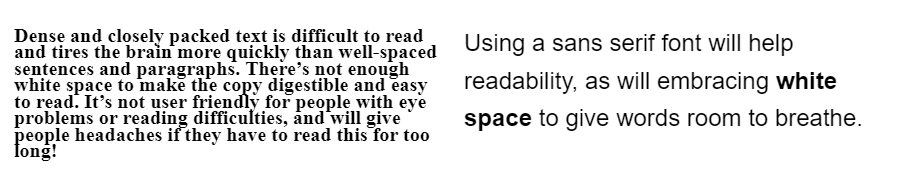 Other ways to make your writing easier to read is to put important details in bold, as this catches attention and makes content easier to scan quickly. Don’t go overboard with the bold, though, or it can become overwhelming and have the opposite effect!