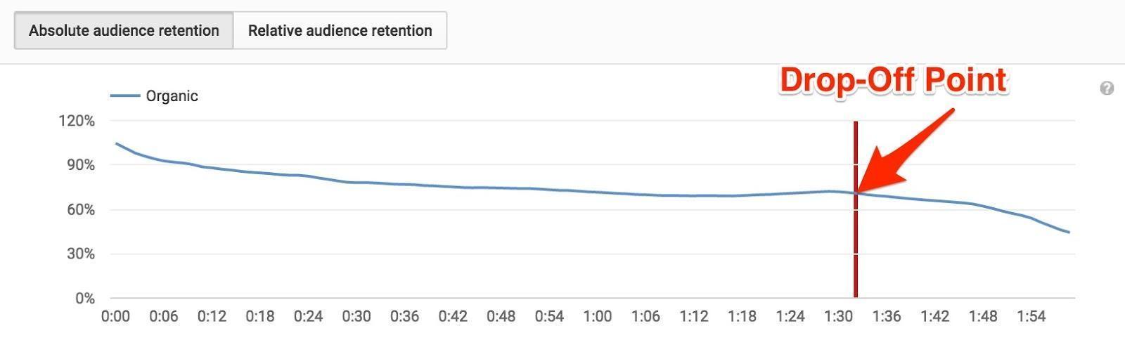 Audience retention is another critical metric to monitor. Audience retention measures the percentage of viewers who watched your video over its length. In simple terms, it measures the drop-off of viewers over the length of the video.