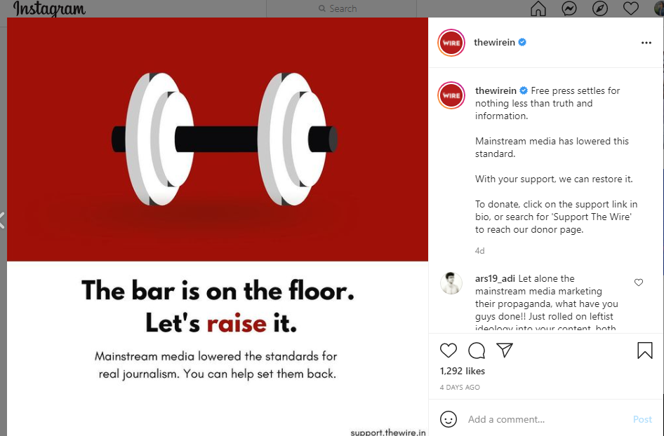 Check out how The Wire shares critical opinions on controversial topics to make its content shareable on social channels.