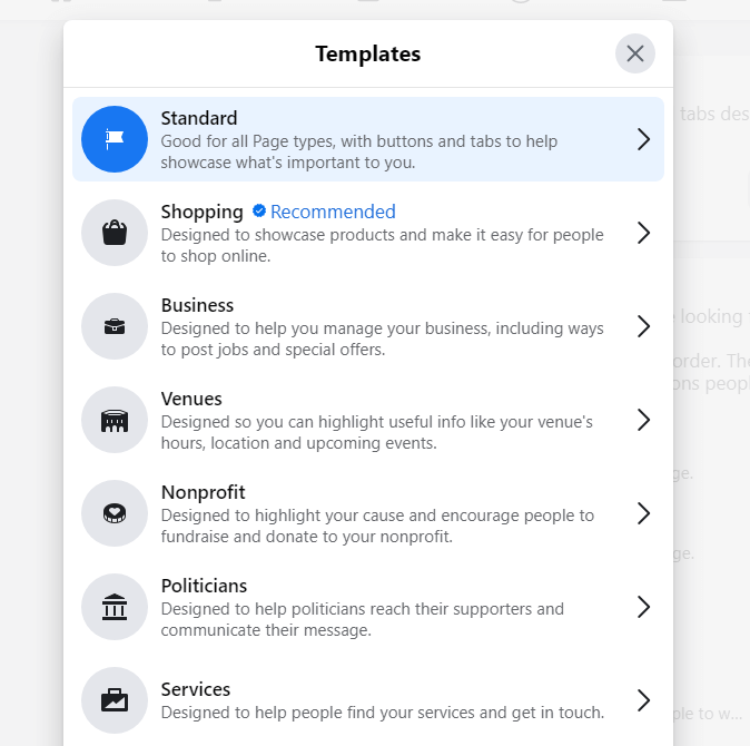 In the recent update, Facebook lets you choose a template with default buttons and tabs designed to help your Page.