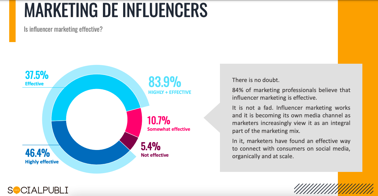 A recent study also found that 84% of marketing professionals believe that influencer marketing is an extremely effective strategy. Out of that number, 35.3% believe this is a strategy that delivers the best ROI.